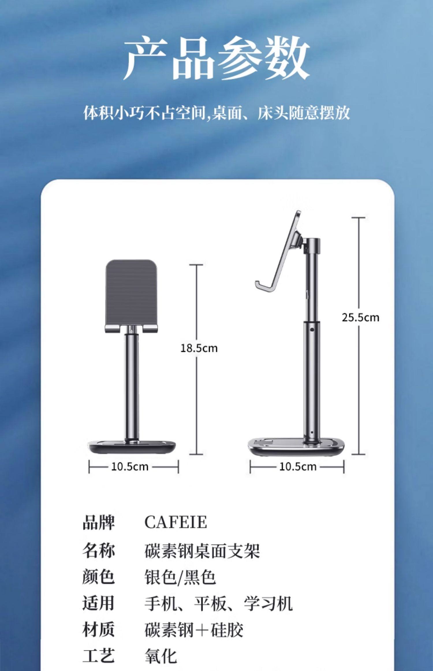 商品名称:手机架支架桌面2025新款平板iPad懒人床上直播拍摄专用支撑架子万能通用办公室桌上落地可升降伸缩铝合金便携