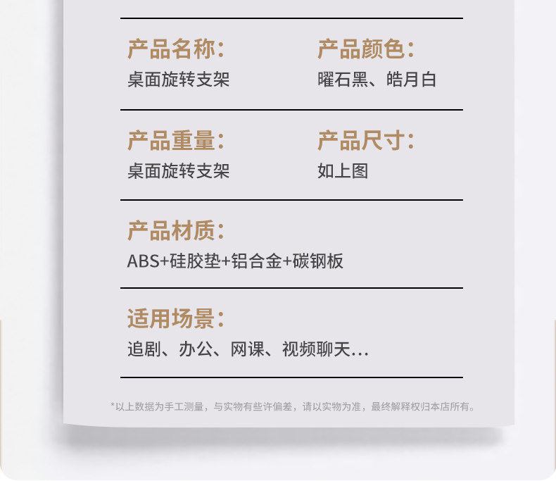 商品名称:无极旋转】手机架支架2025新款桌面直播专用支撑架万能通用懒人架子平板电脑ipad多功能床头看追剧小型