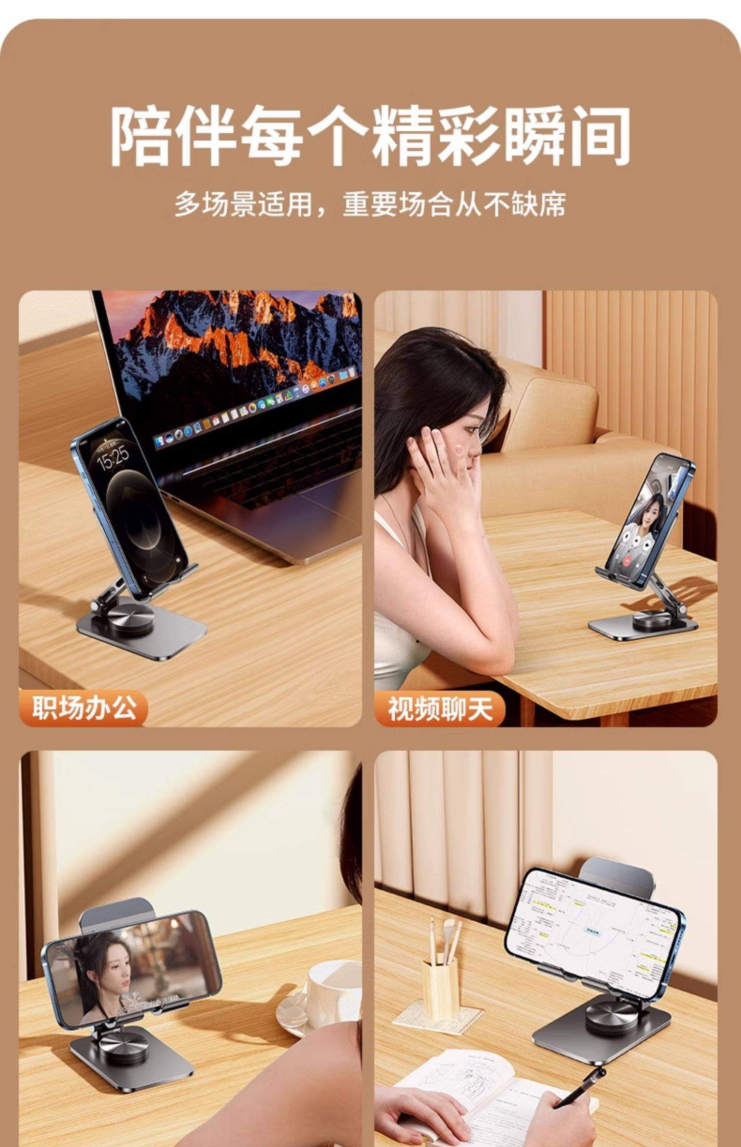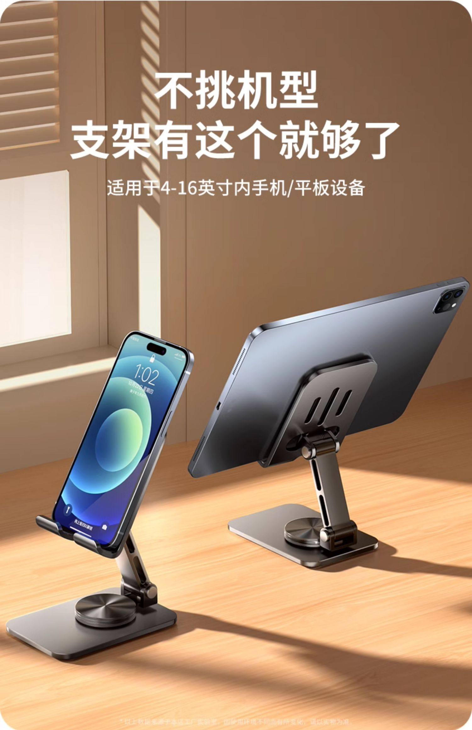 全金属手机支架桌面懒人可360度旋转升降ipad平板电脑支撑架直播视频追剧多功能通用碳素钢架子便携折叠