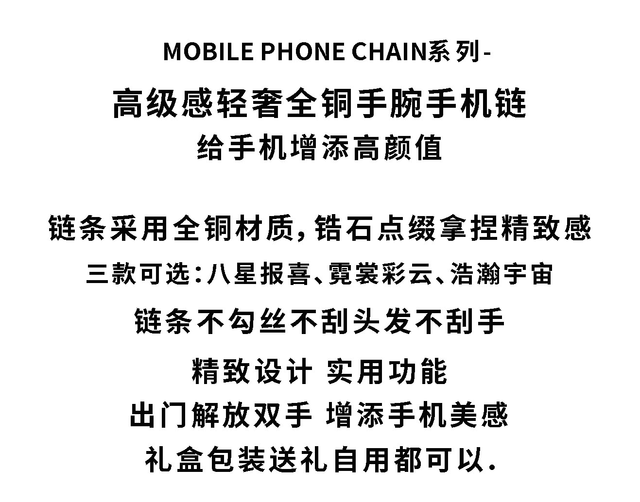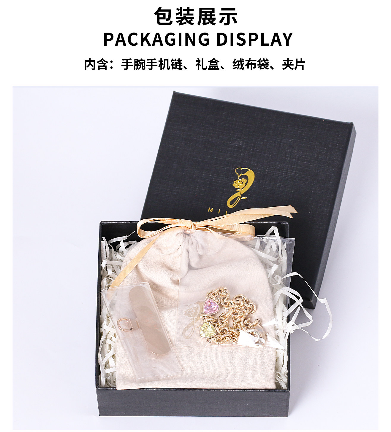商品名称:手机链挂手腕挂绳米勒斯金属闪钻轻奢高级感便携短款个性手机挂绳