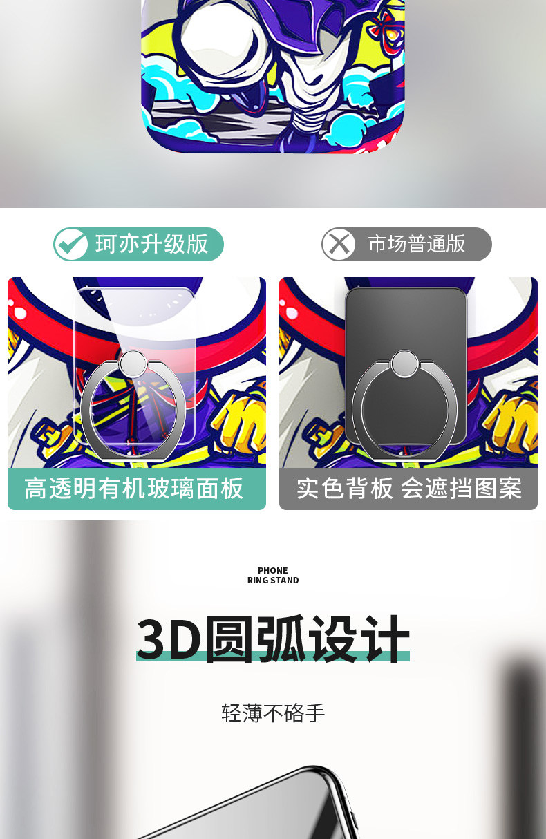 商品名称:全透明隐形手机指扣环壳指环扣支架懒人环指扣桌面支撑架夹拉环扣背吸盘强力粘贴式多功能圈手环超薄女男