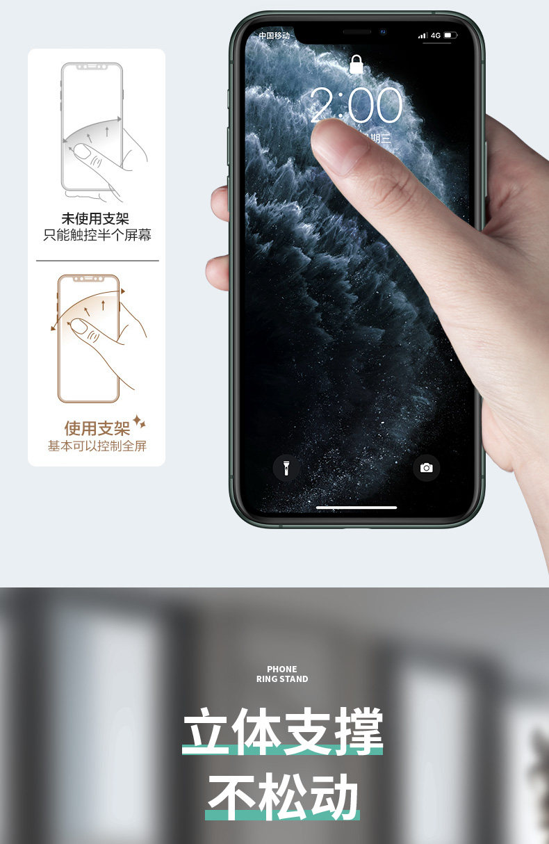 全透明隐形手机指扣环壳指环扣支架懒人环指扣桌面支撑架夹拉环扣背吸盘强力粘贴式多功能圈手环超薄女男