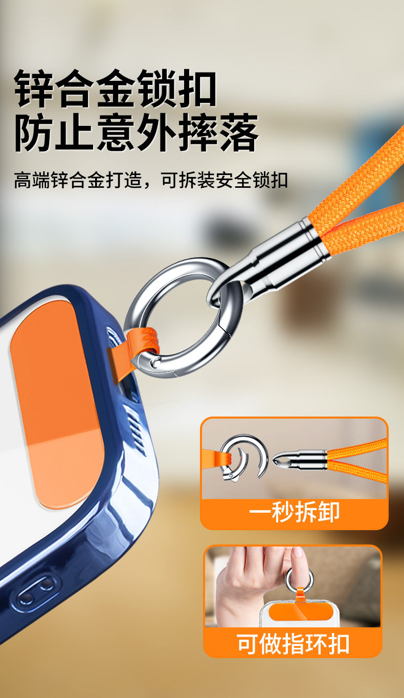 商品名称:阑钻适用手机挂绳可手腕可挂脖可斜跨可背防丢挂绳高级感精致好看女男手机神器带垫片夹片不伤机锁扣防摔防盗
