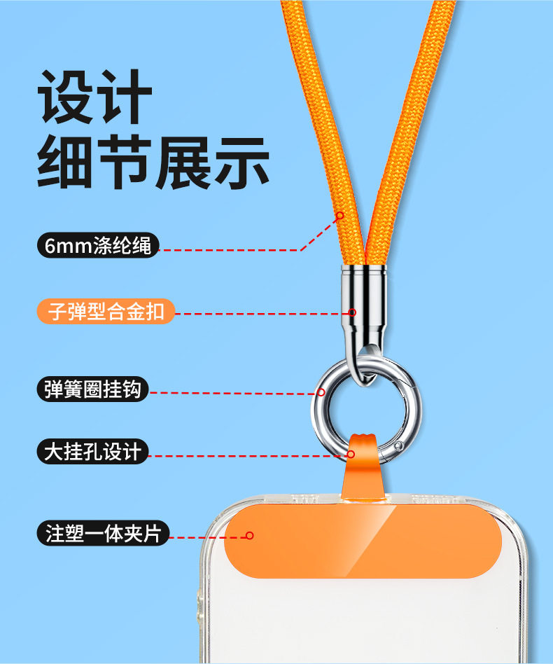 【挂脖绳·活力橙】360°旋转防缠绕+送夹片