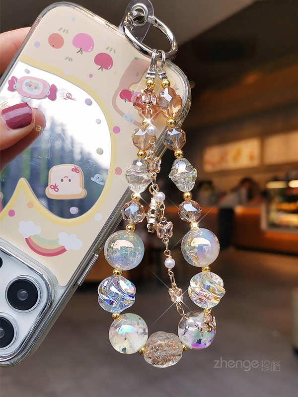 手机挂绳梦幻星空水晶珠手链女款ins精品手作时尚小香风手提手腕挂饰挂链短款夹片式手机壳通用吊绳礼盒新款