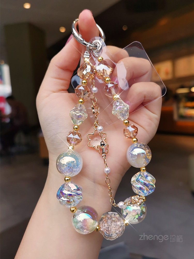 商品名称:手机挂绳梦幻星空水晶珠手链女款ins精品手作时尚小香风手提手腕挂饰挂链短款夹片式手机壳通用吊绳礼盒新款