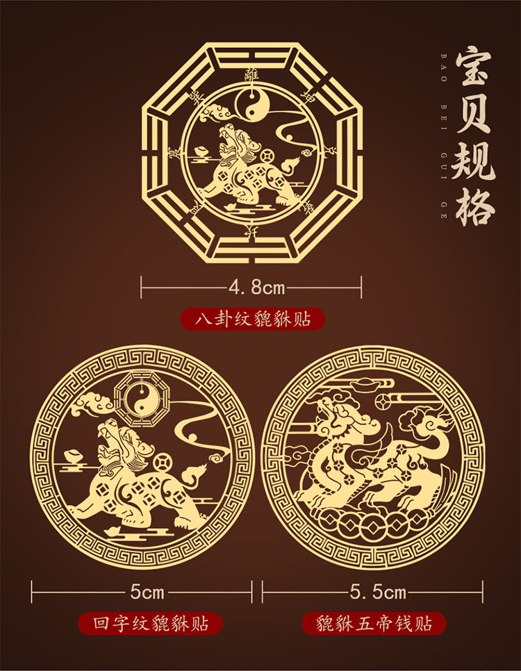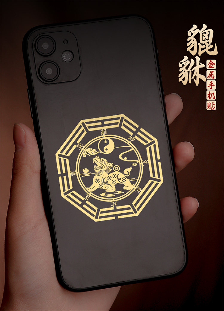 招财转运貔貅手机贴纸后壳金属贴聚财运背部贴画图案背面贴装饰品