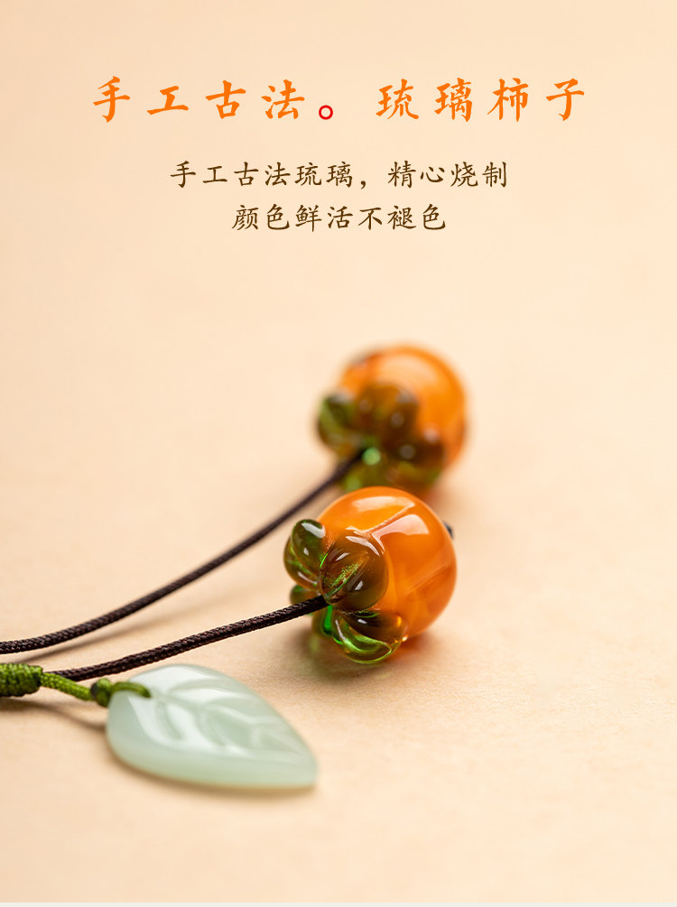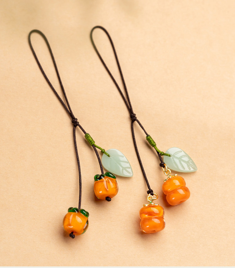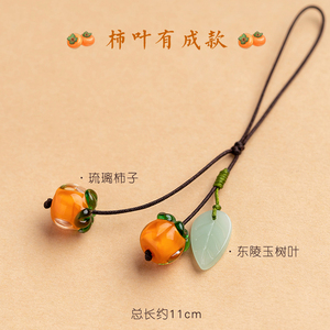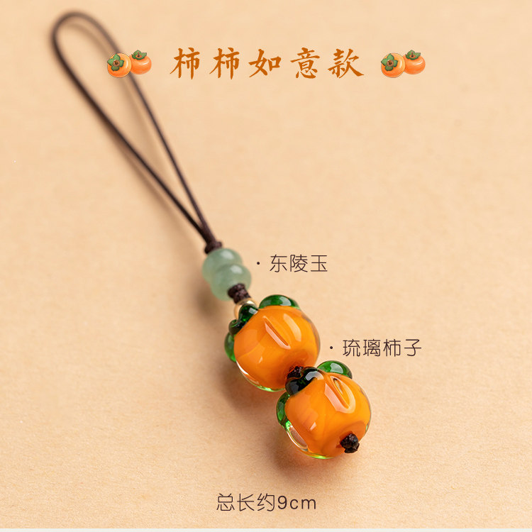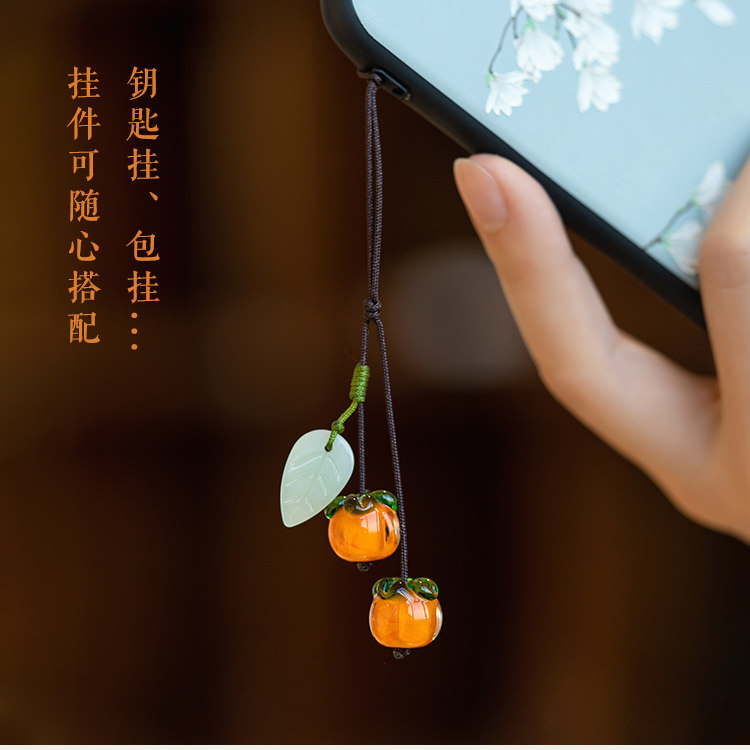 柿柿如意手机挂件短款挂绳男女复古风琉璃柿子挂坠手机壳精致吊坠背包钥匙扣U盘防丢绳手提袋装饰配件手机链