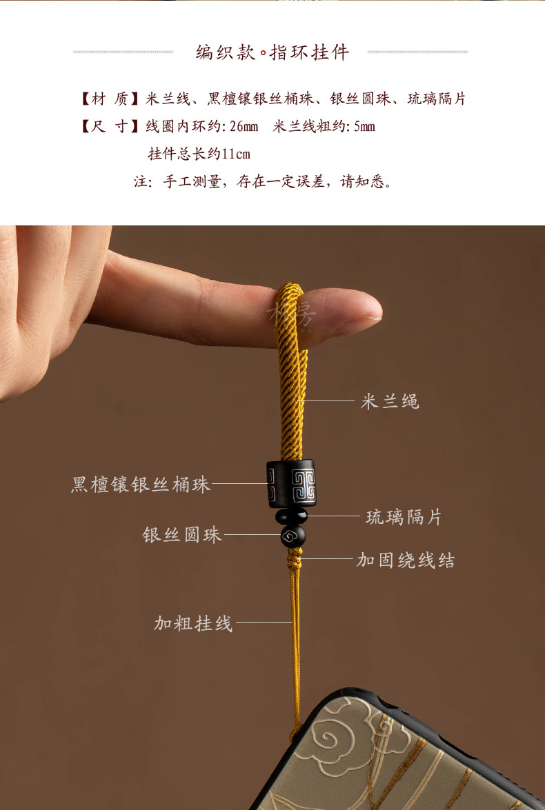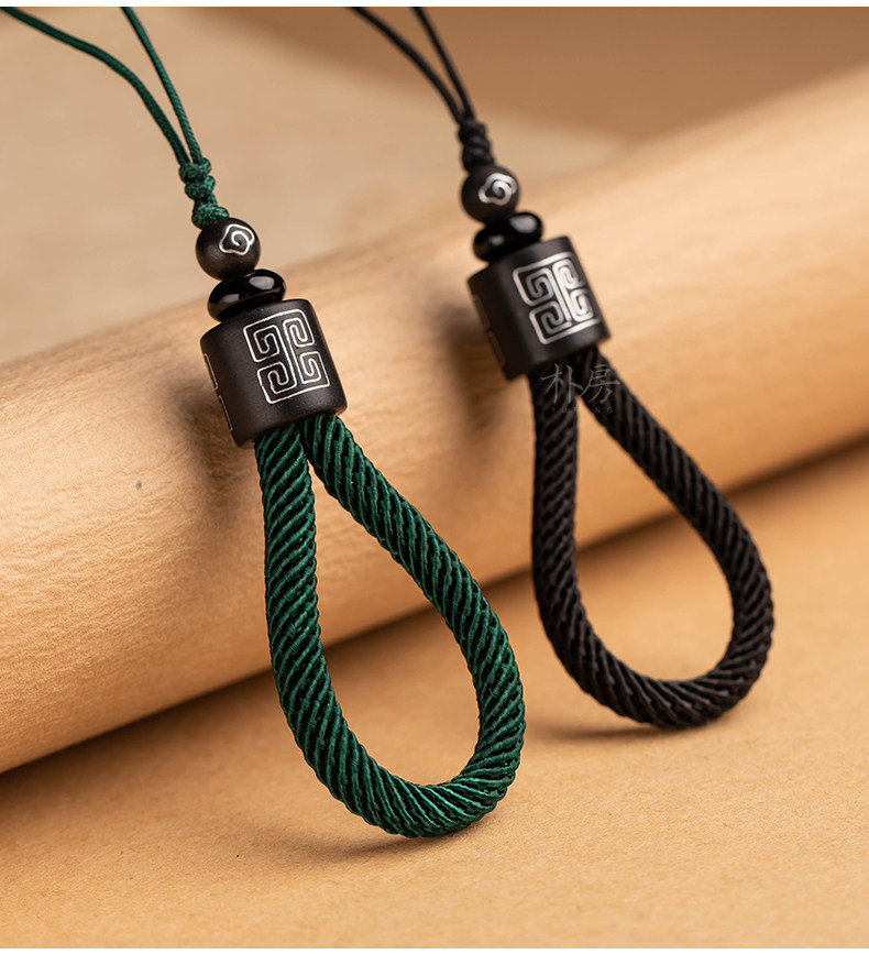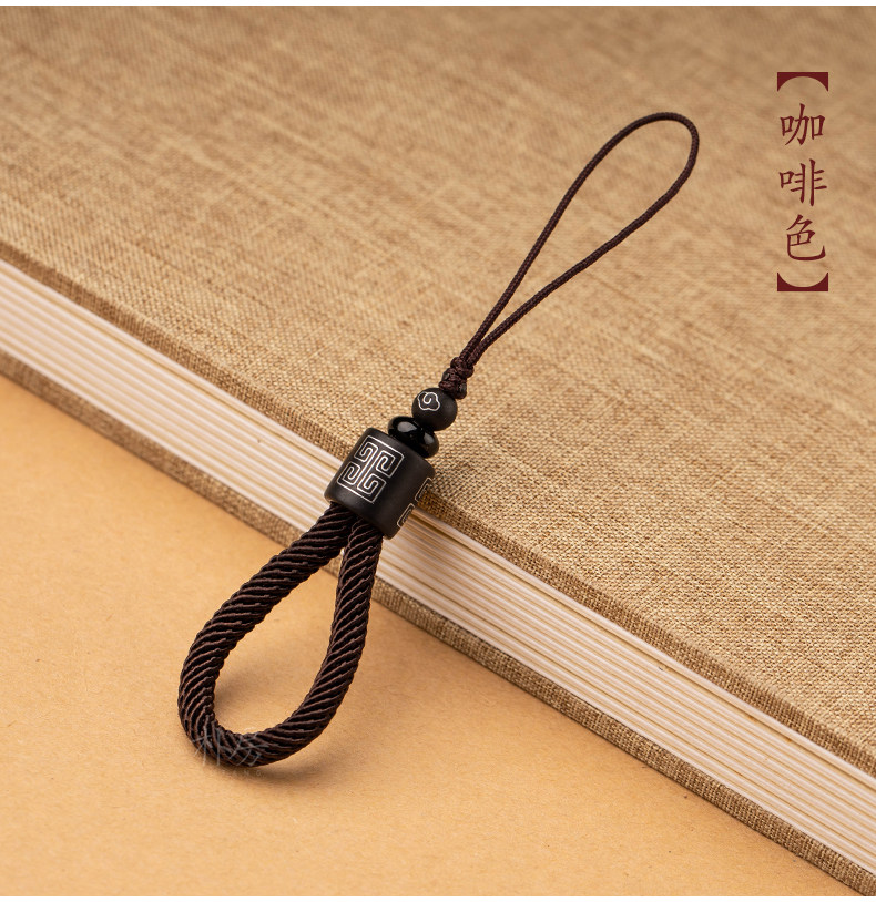 商品名称:朴房原创手机挂绳短款防丢手编檀木指环绳男女士复古风手机链挂件