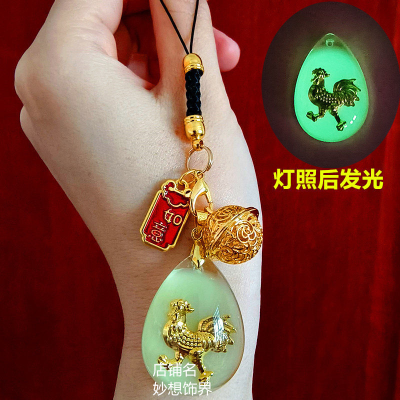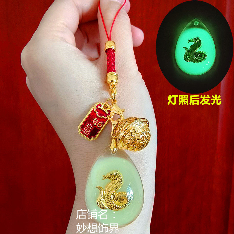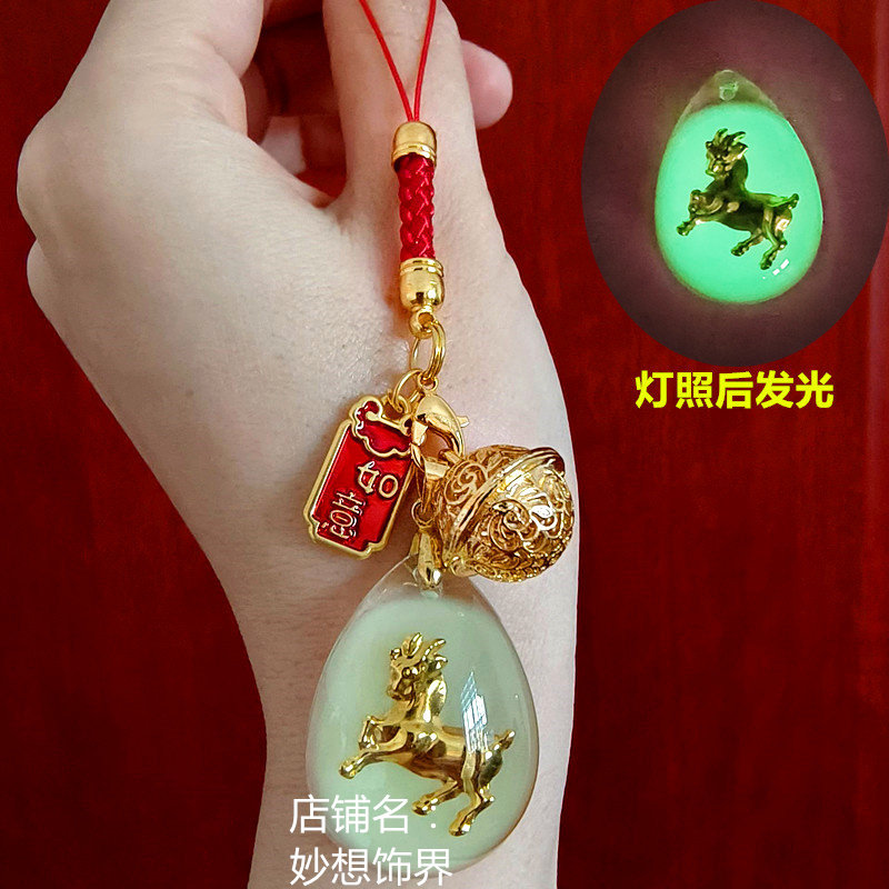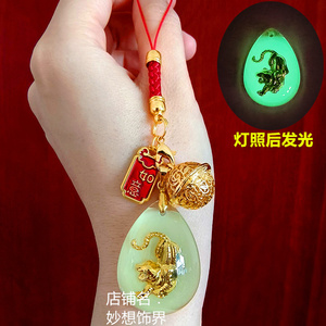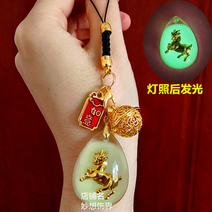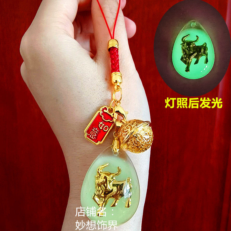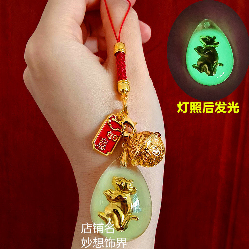 12十二生肖夜光手机链红绳挂件铃铛饰品U盘吊坠男女款发光防丢绳
