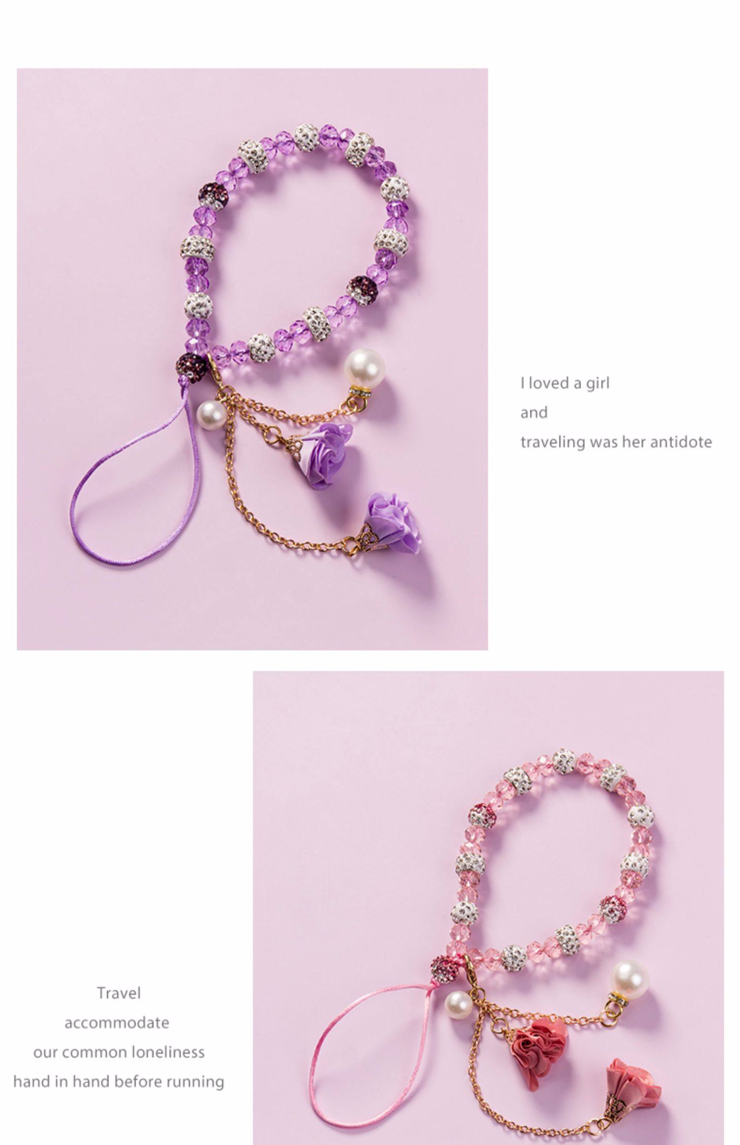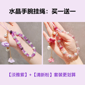 【淡雅紫+清新粉】水晶花朵挂绳