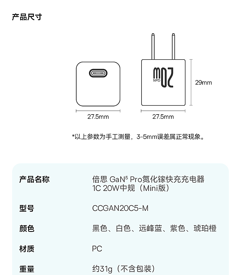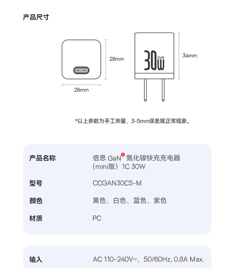 型号:倍思氮化镓30w