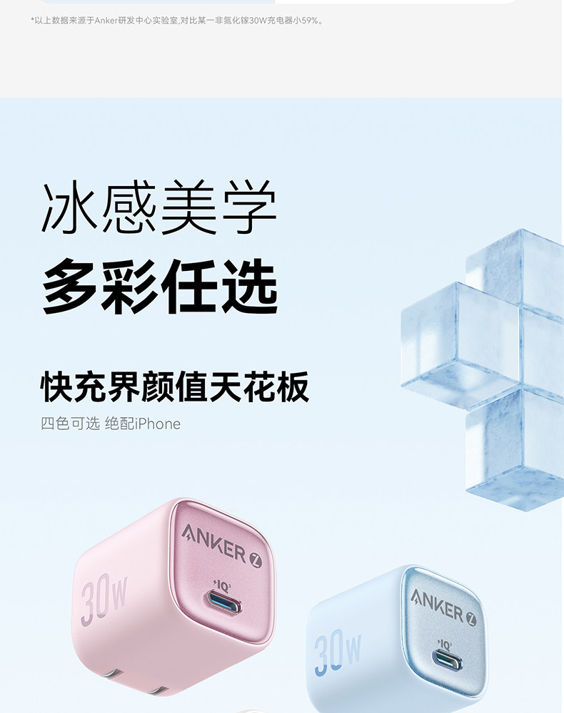 Anker安克冰点充20W充电器适用iPhone15快充头30W苹果16安克原装正品pd手机14promax数据线typec套装13plus头