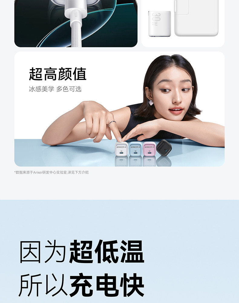 商品名称:Anker安克冰点充20W充电器适用iPhone15快充头30W苹果16安克原装正品pd手机14promax数据线typec套装13plus头