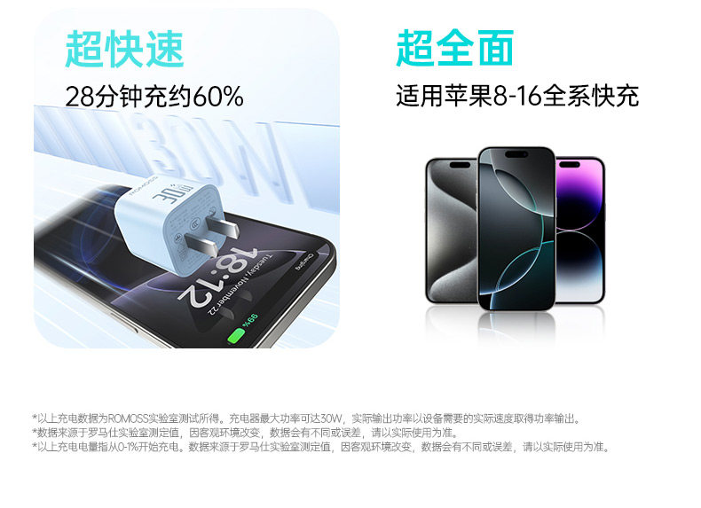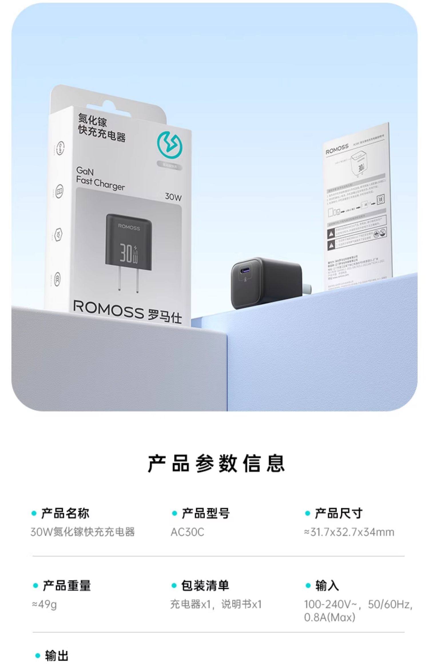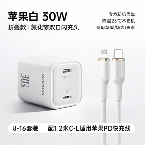 商品名称:罗马仕30W适用苹果充电器iPhone16充电头氮化镓PD快充头15Promax充电线14数据线套装iPad手机typec插头正品