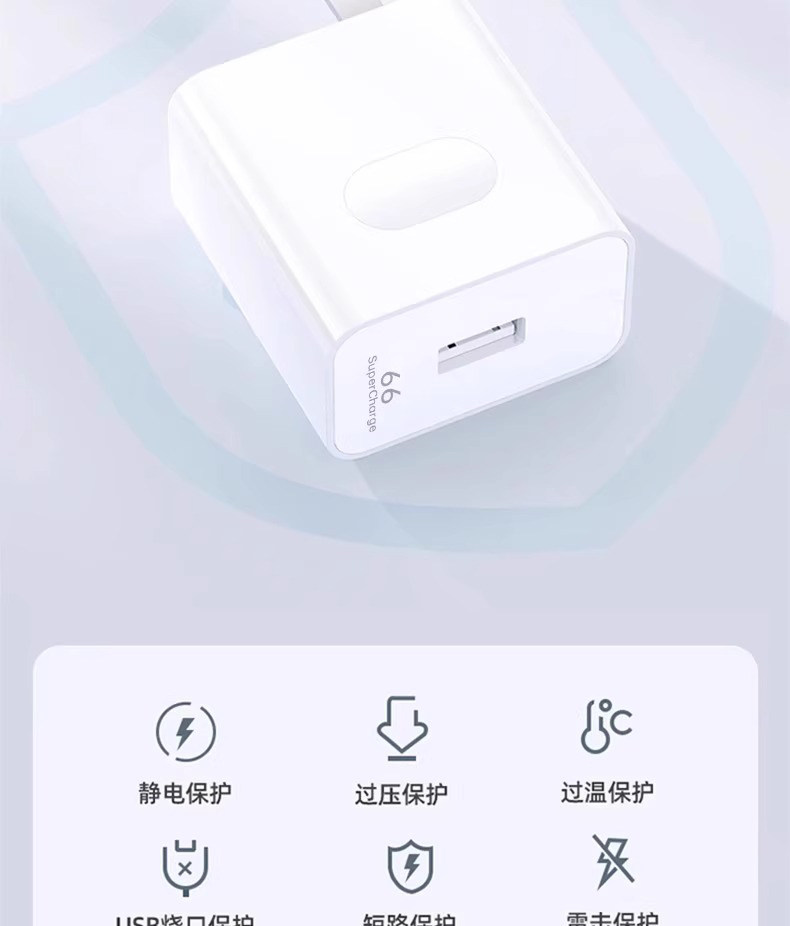 【官方正品】66超级快充头+1米6A快充线