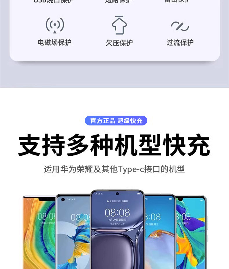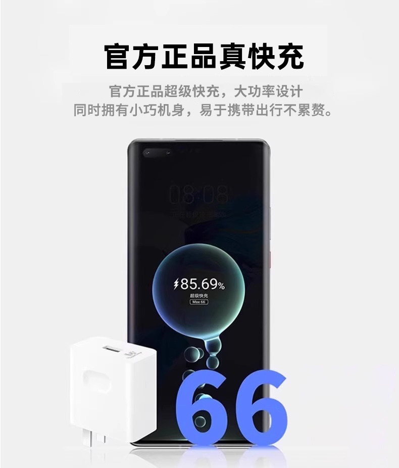 商品名称:【官方正品】适用华为手机充电器头Mate60pro/50荣耀40快充超级Nova8/7/9/10数据线66/100原套装120插头696