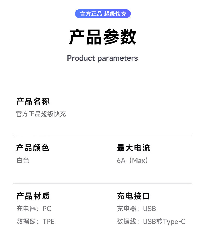 【官方正品】100超级快充头+1.5米6A快充线