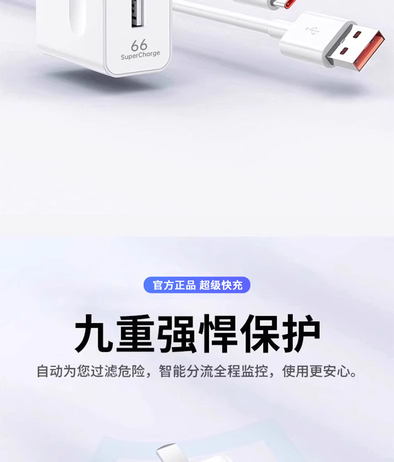 【官方正品】66超级快充头+两条1米6A快充线
