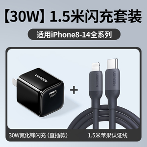 【8-14 套装】30W炫酷黑+1.5米官方认证Lightning硅胶线