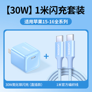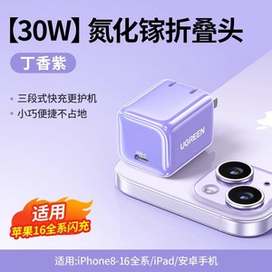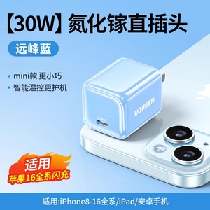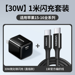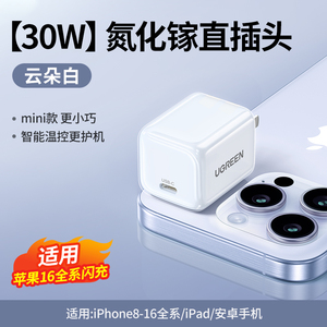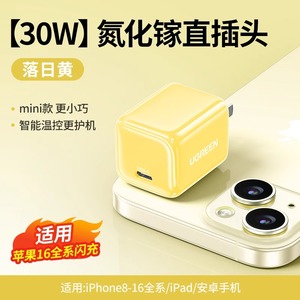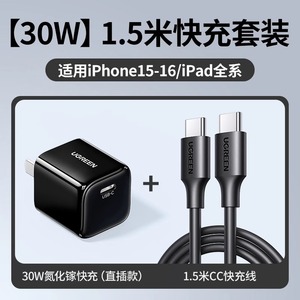 绿联30W适用苹果16promax充电器线iPhone16充电头快充氮化镓15手机iPad插头typec数据线套装适用小米正品便携