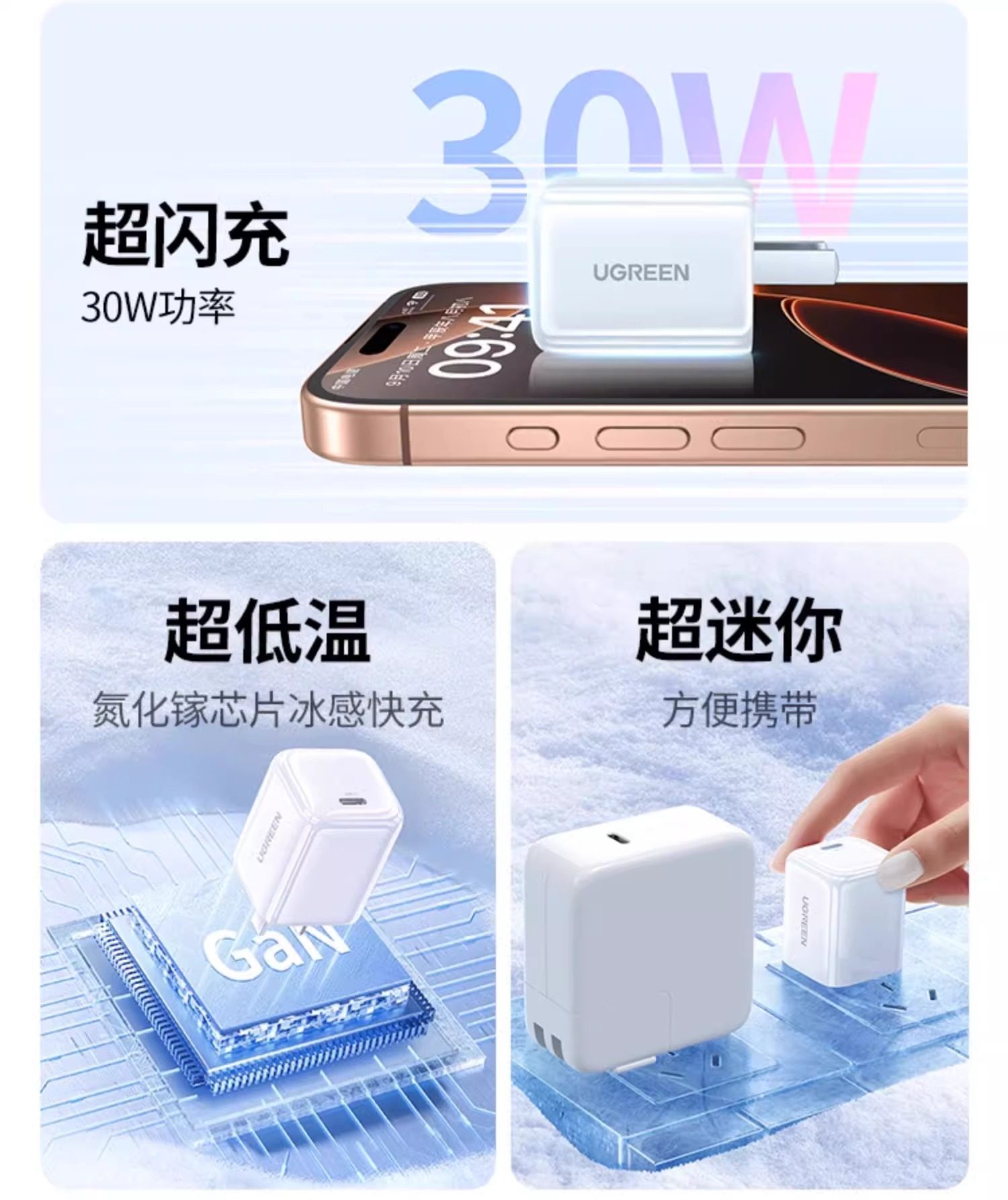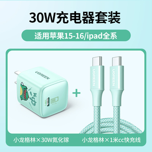 商品名称:绿联30W适用苹果16promax充电器线iPhone16充电头快充氮化镓15手机iPad插头typec数据线套装适用小米正品便携