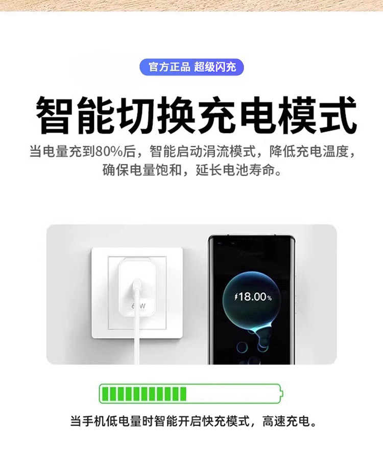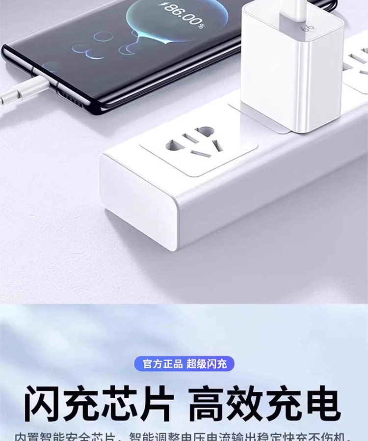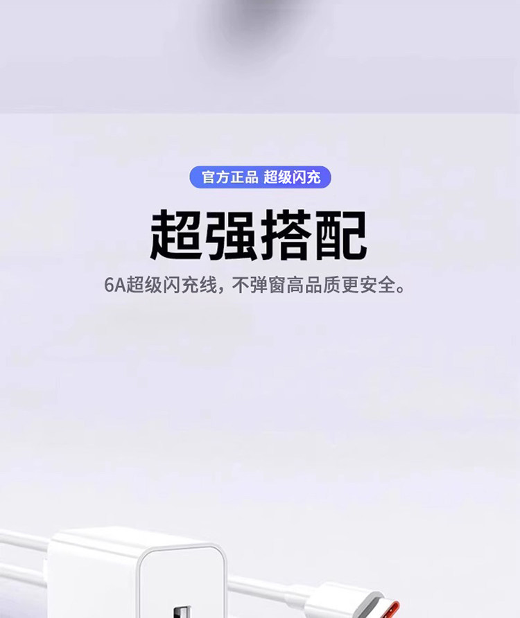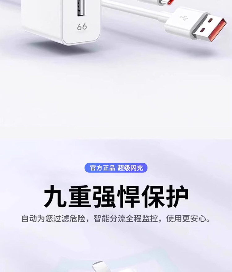 【官方正品】66W超级快充头+两条1.5米6A快充线