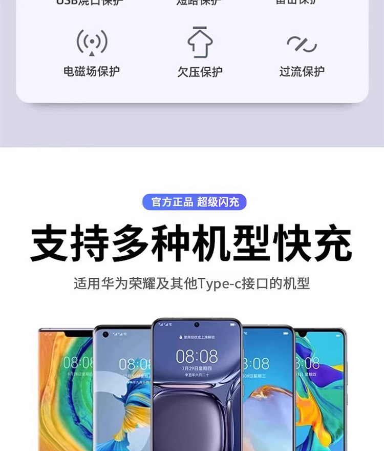 商品名称:【官方正品】适用华为66充电器头Mate60pro50荣耀40快充超级Nova8/7/9/10/w手机数据线100原套装120插头W2025