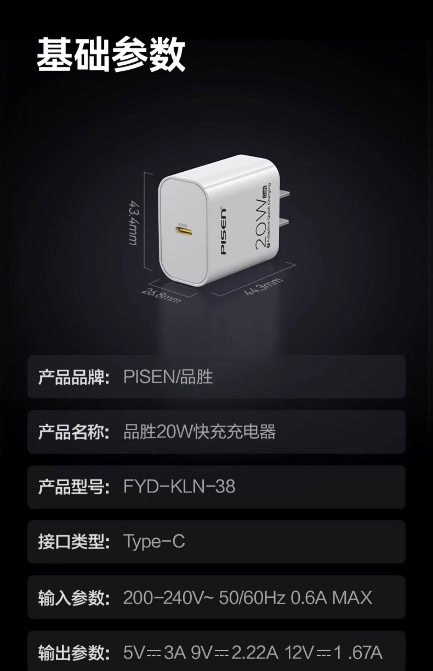 Pisen/品胜充电器型号