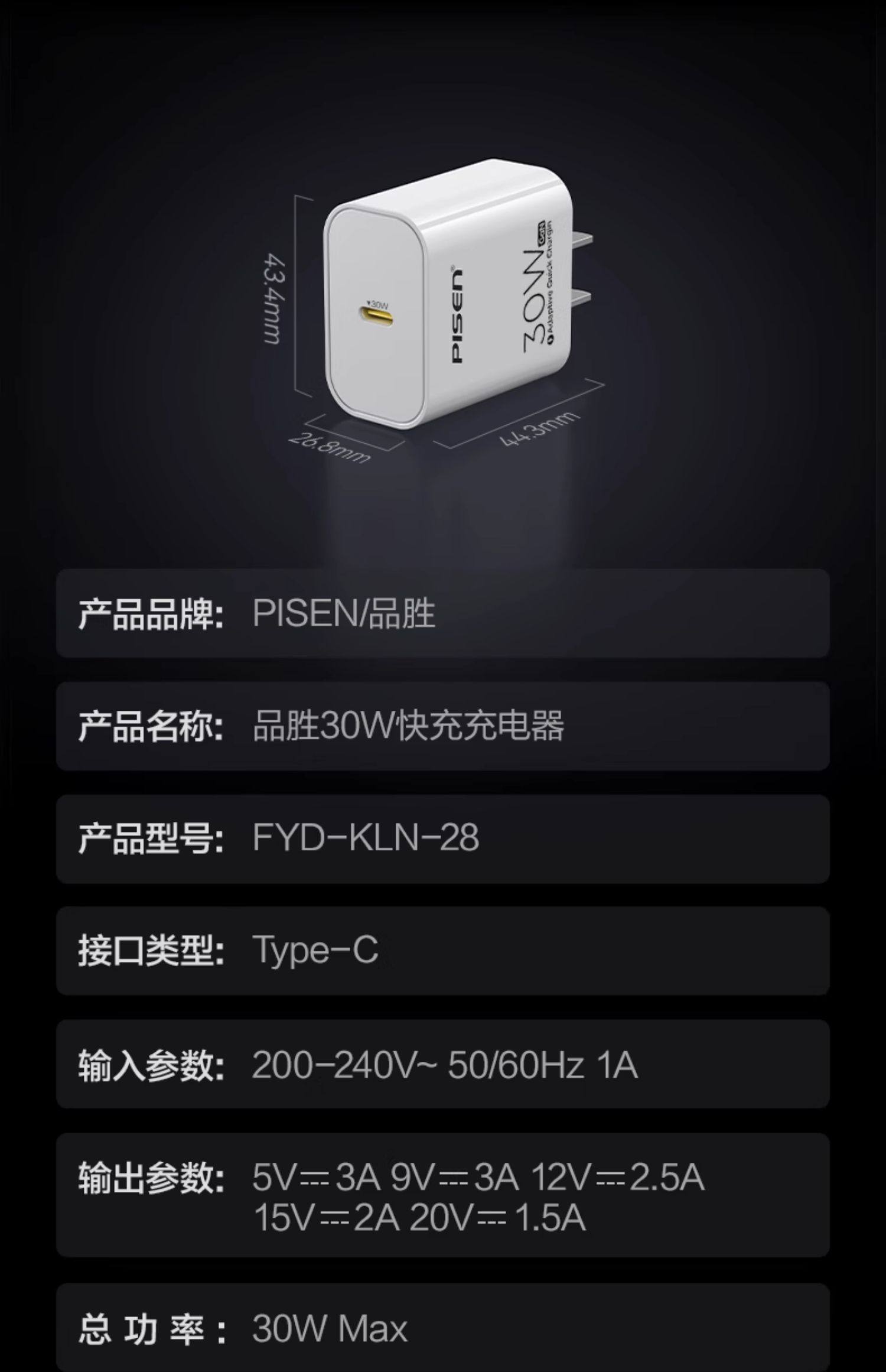 单口最大输出功率:20W