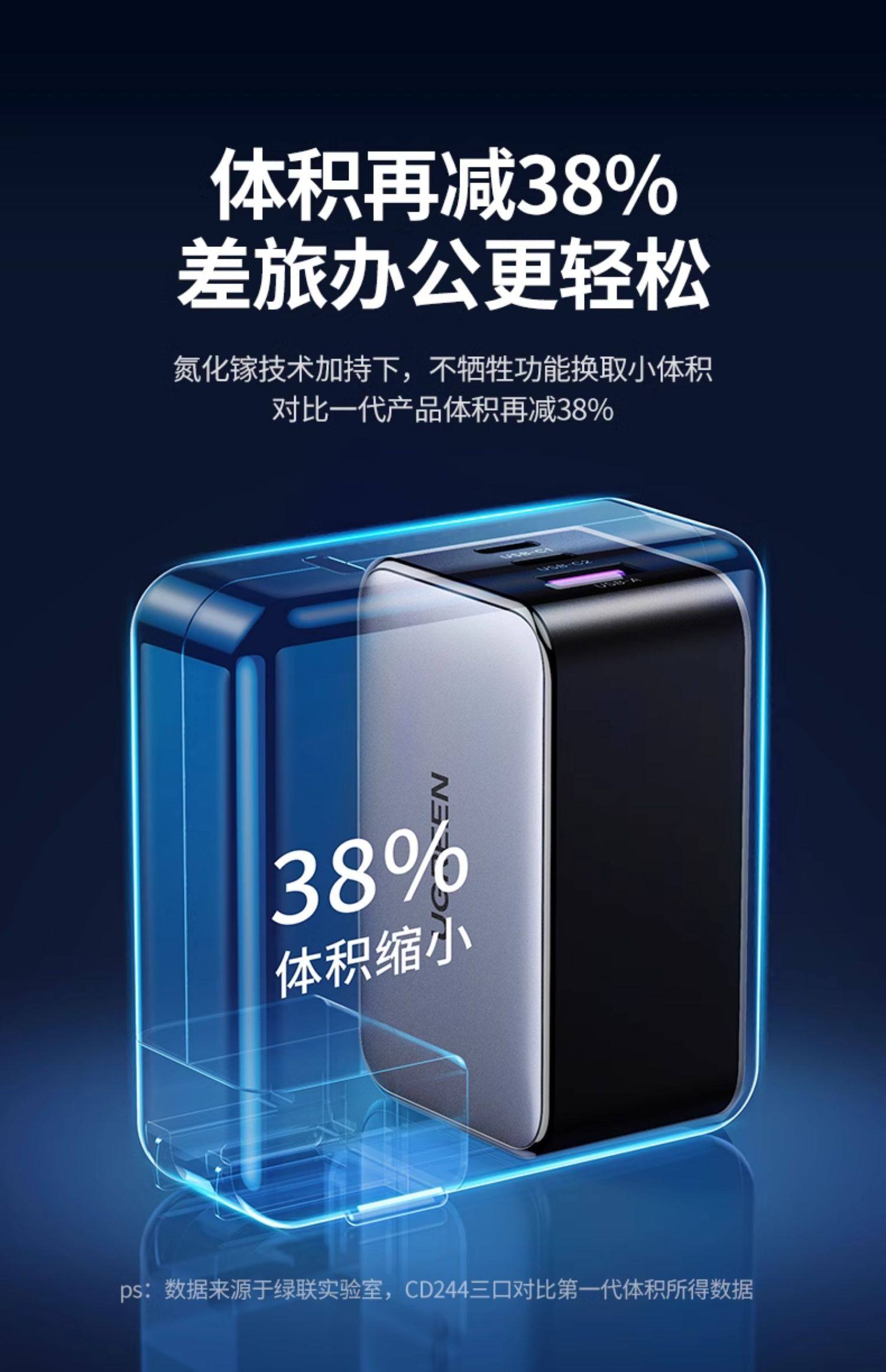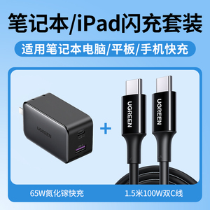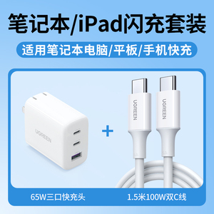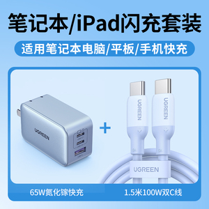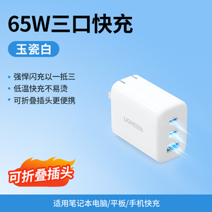 绿联65W氮化镓充电器PD快充头Gan适用Switch2苹果iPhone16华为小米macbookair手机笔记本电脑双typec多口插头