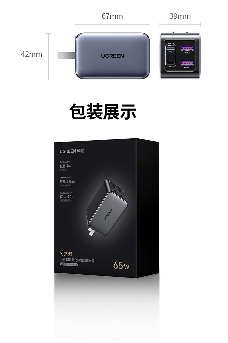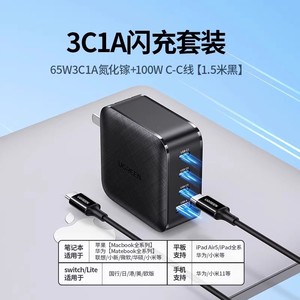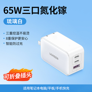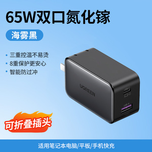 商品名称:绿联65W氮化镓充电器PD快充头Gan适用Switch2苹果iPhone16华为小米macbookair手机笔记本电脑双typec多口插头