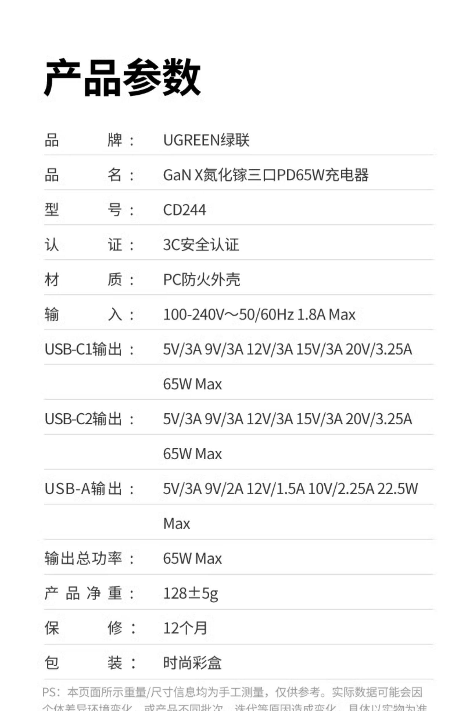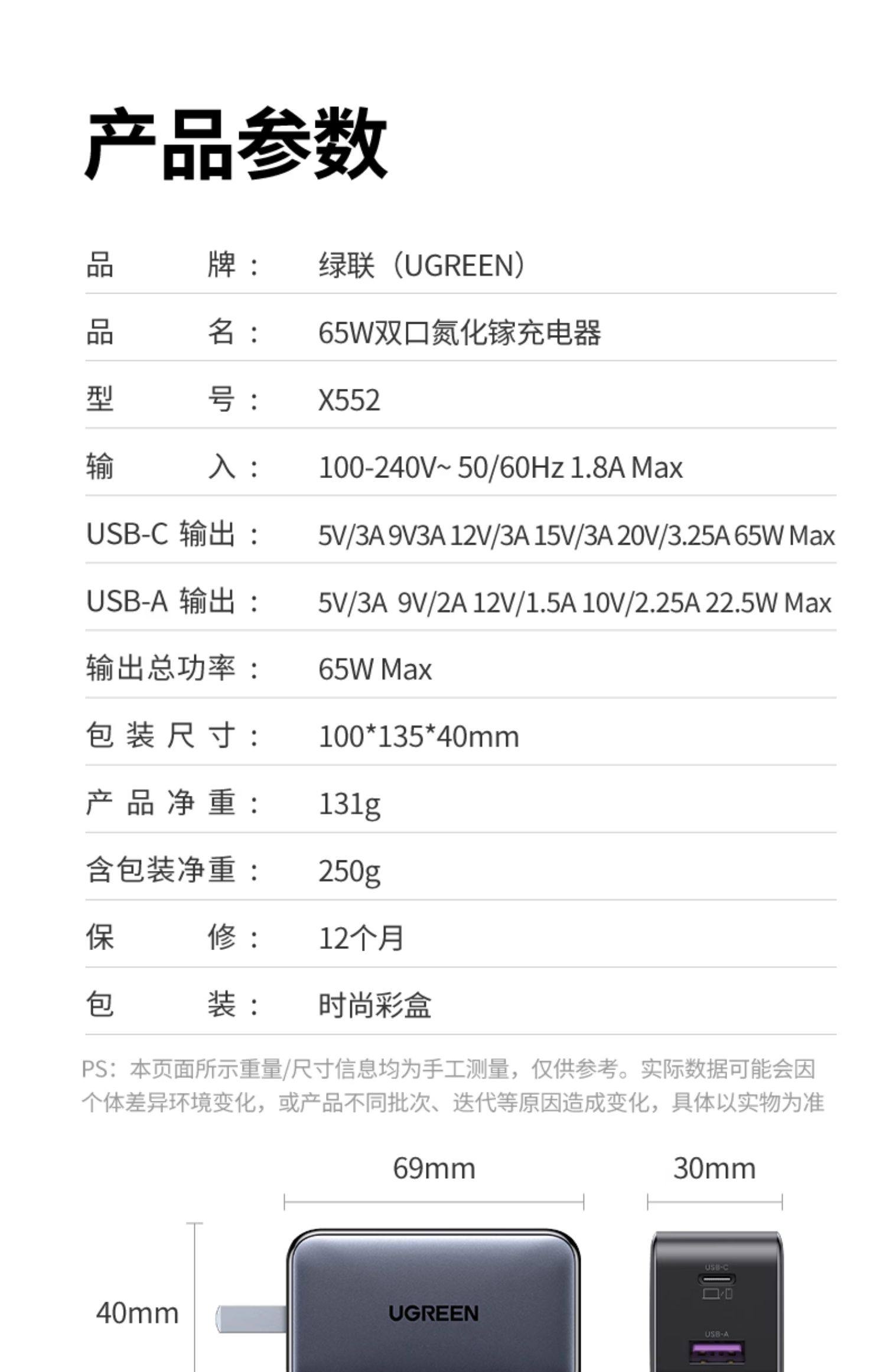 单口最大输出功率:65W