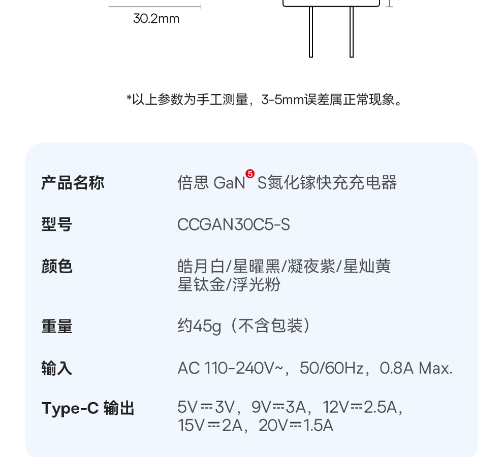 【6-14套装】30W星曜黑+1.5米PD快充线
