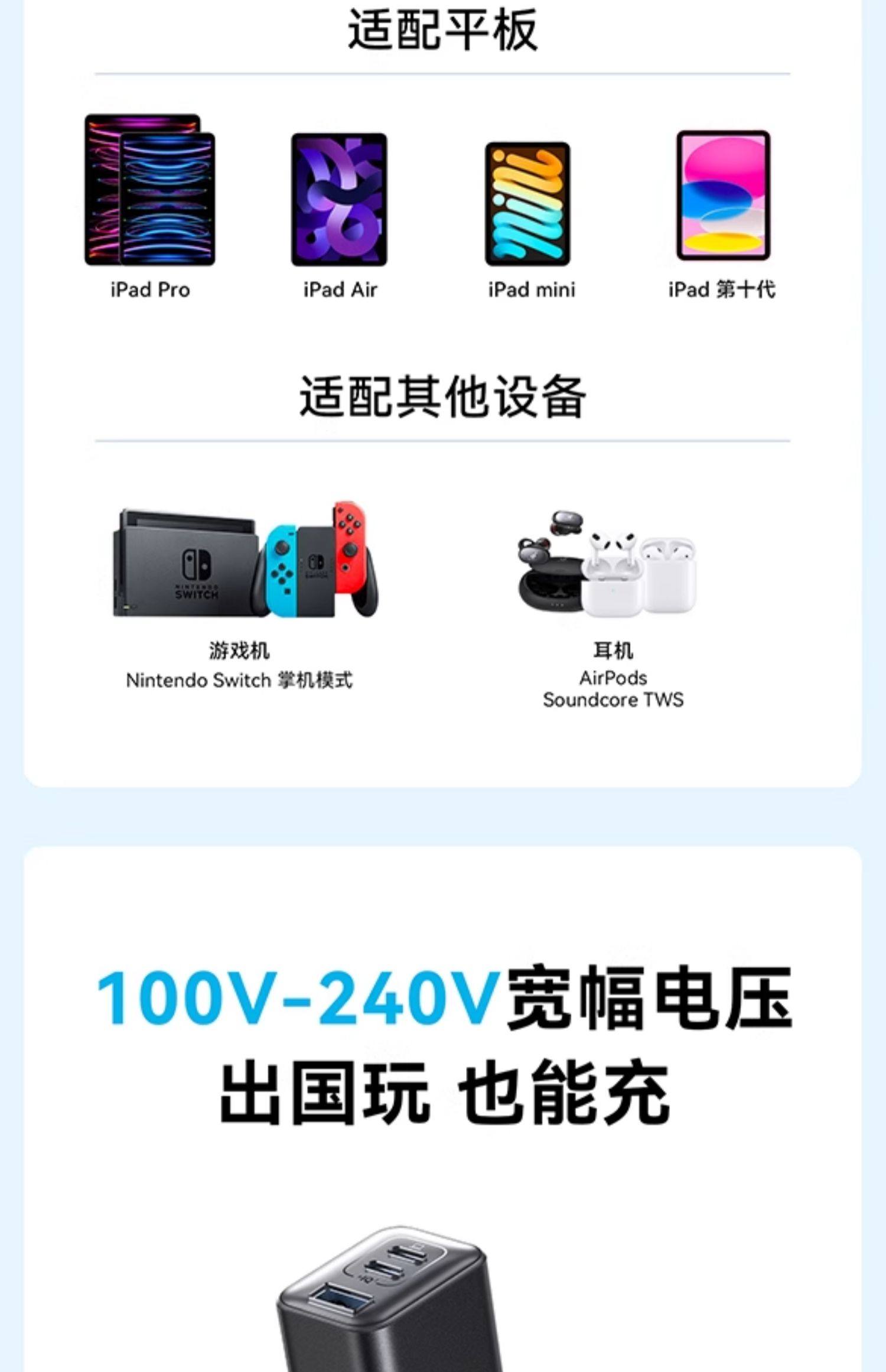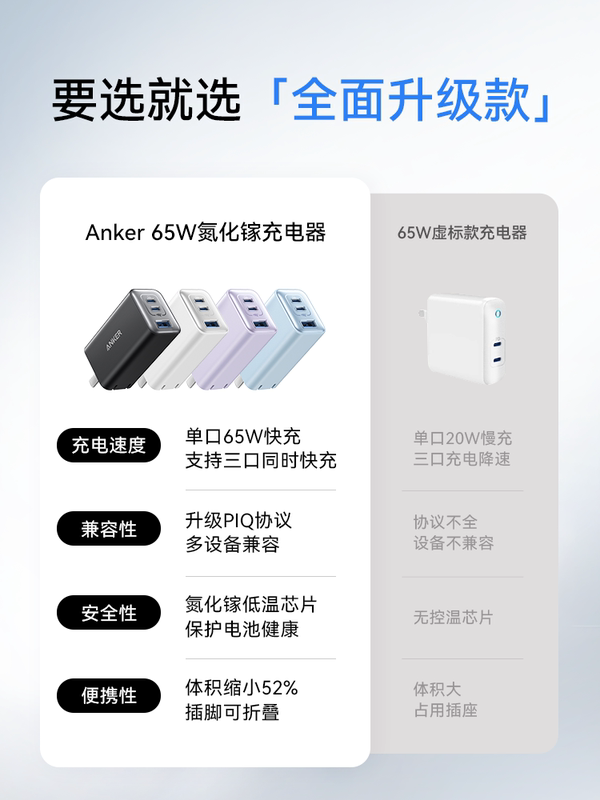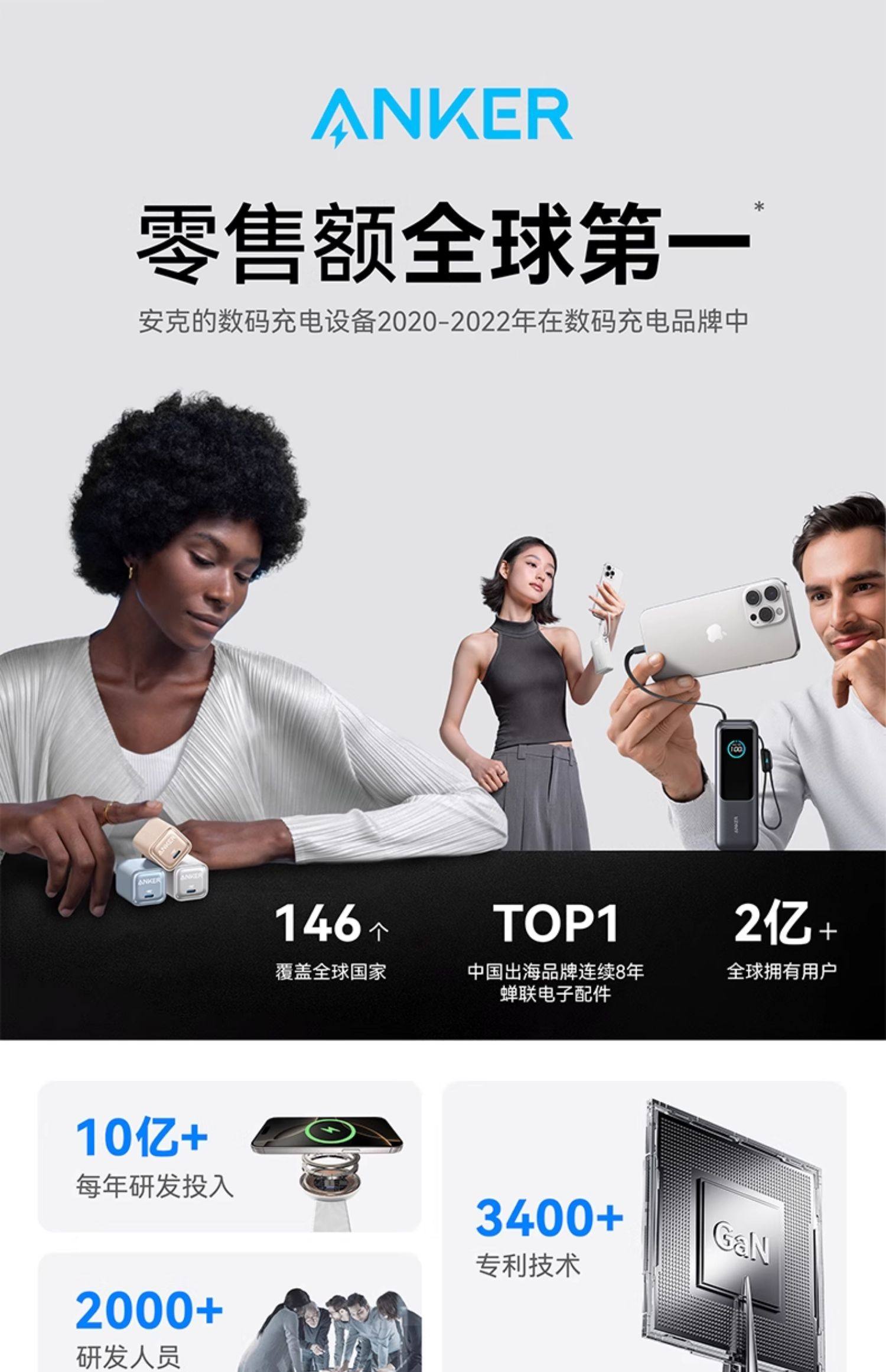 商品名称:Anker安克65W氮化镓充电器快充充电头PD适用平板iPhone15pro苹果16手机iPhone16macbook笔记本电脑插多口45W