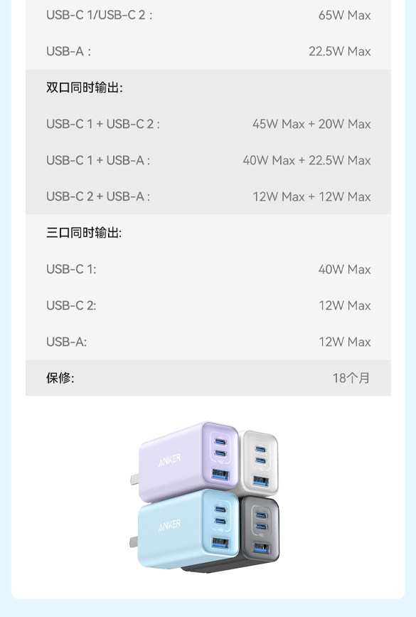 单口最大输出功率:65W
